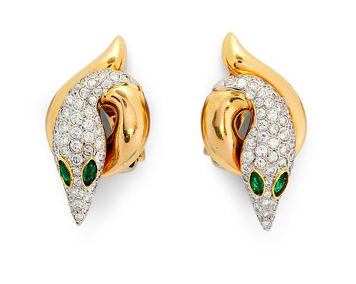 BULGARI PAIR OF EMERALD AND DIAMOND 'SERPENTI' EARRINGS