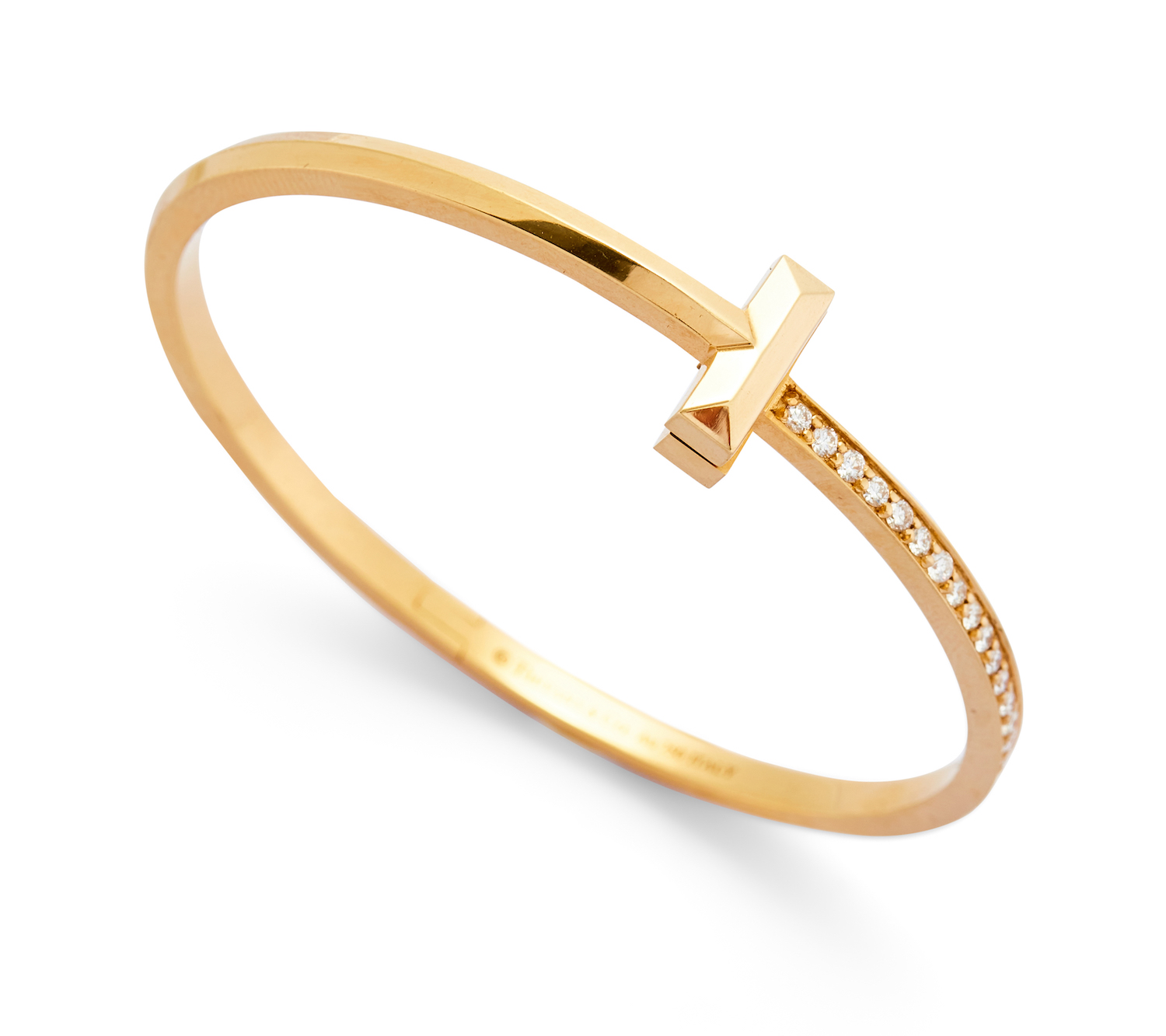 TIFFANY & CO. 18CT GOLD AND DIAMOND 'T1' BANGLE