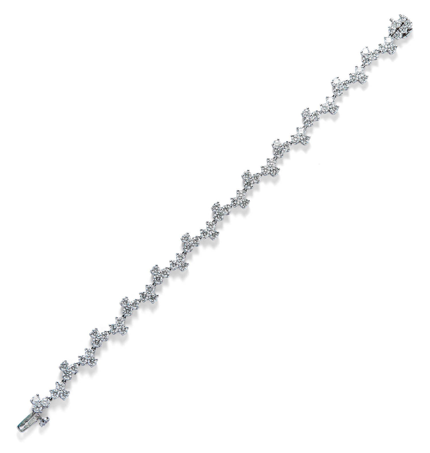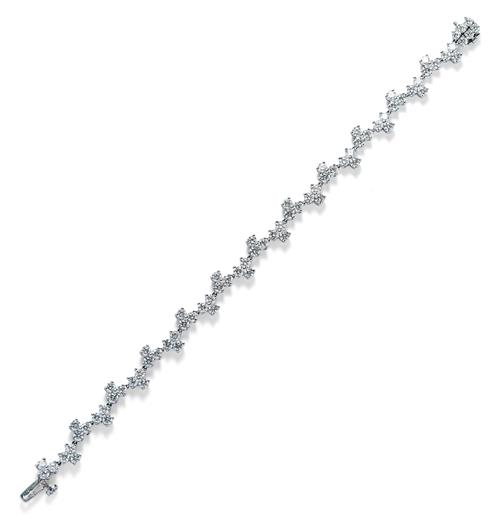 Composed of a line of clusters claw-set with brilliant-cut diamonds, completed by a concealed box clasp, the diamonds together weighing approximately 3.10 carats, mounted in platinum, length 150mm, signed T&Co. for Tiffany & Co.