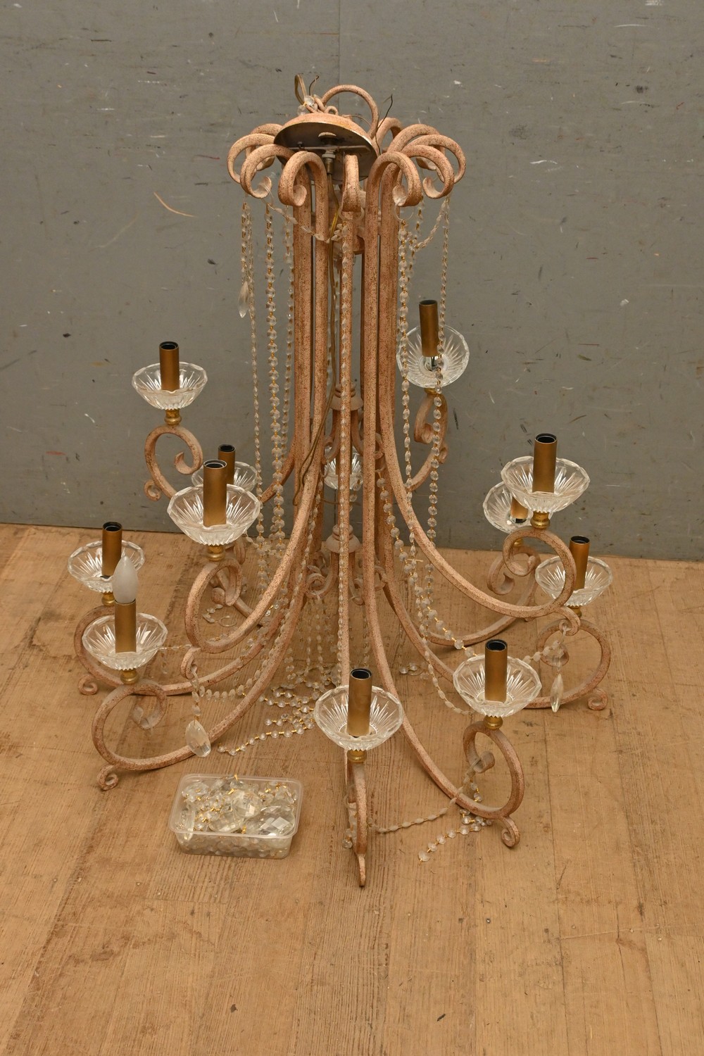 A VINTAGE WROUGHT IRON CHANDELIER (A/F) ( 89H X 78 DIAMETER CM) (PLEASE NOTE THIS HEAVY ITEM MUST BE REMOVED BY CARRIERS AT THE CUSTOMER'S EXPENSE. LEONARD JOEL STAFF CANNOT ASSIST CARRYING THIS ITEM) (X-LARGE ITEM)