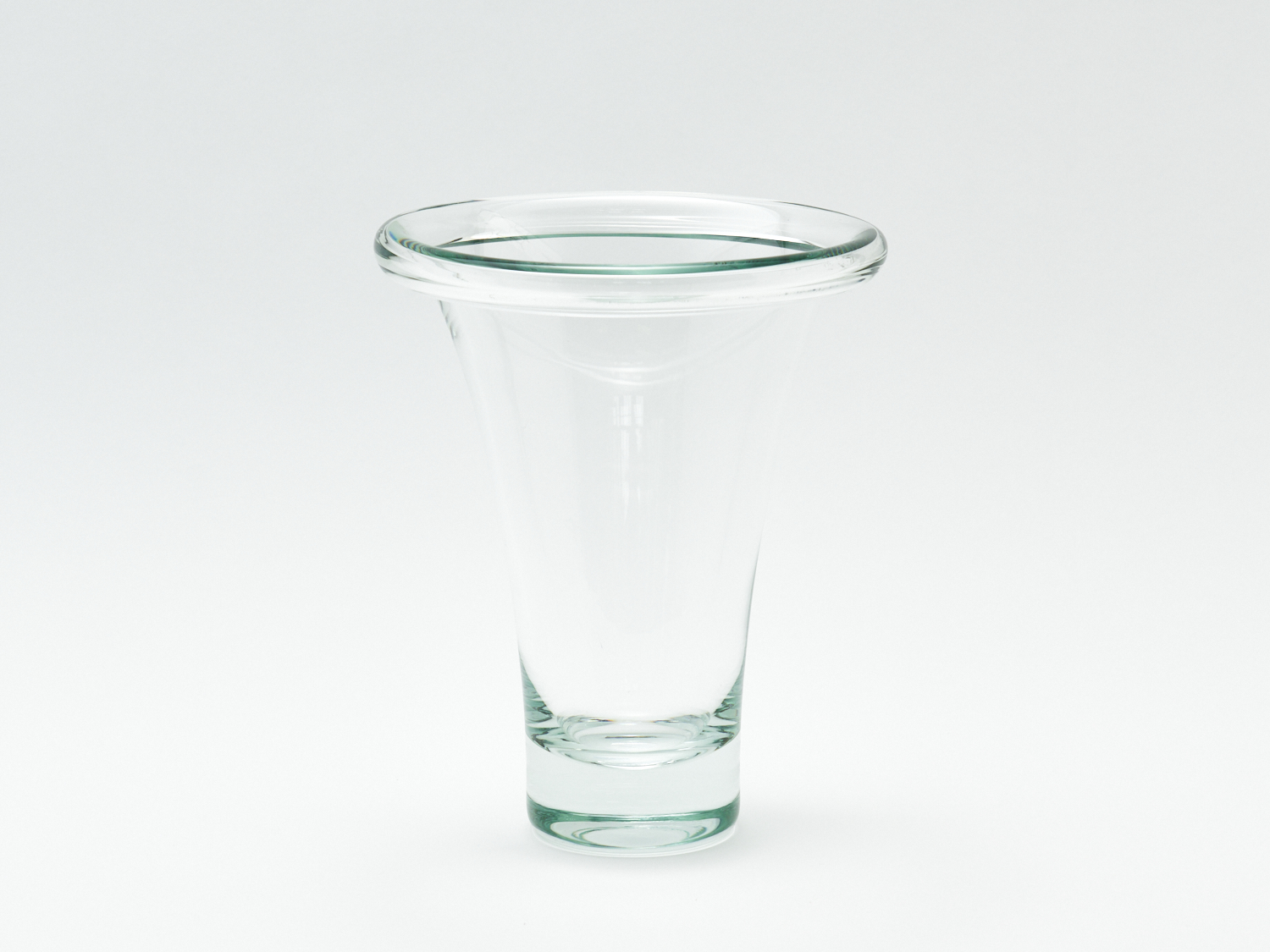 A HANDBLOWN CLEAR GLASS VASE WITH FOLDED RIM, H.24CM, LEONARD JOEL LOCAL DELIVERY: SMALL