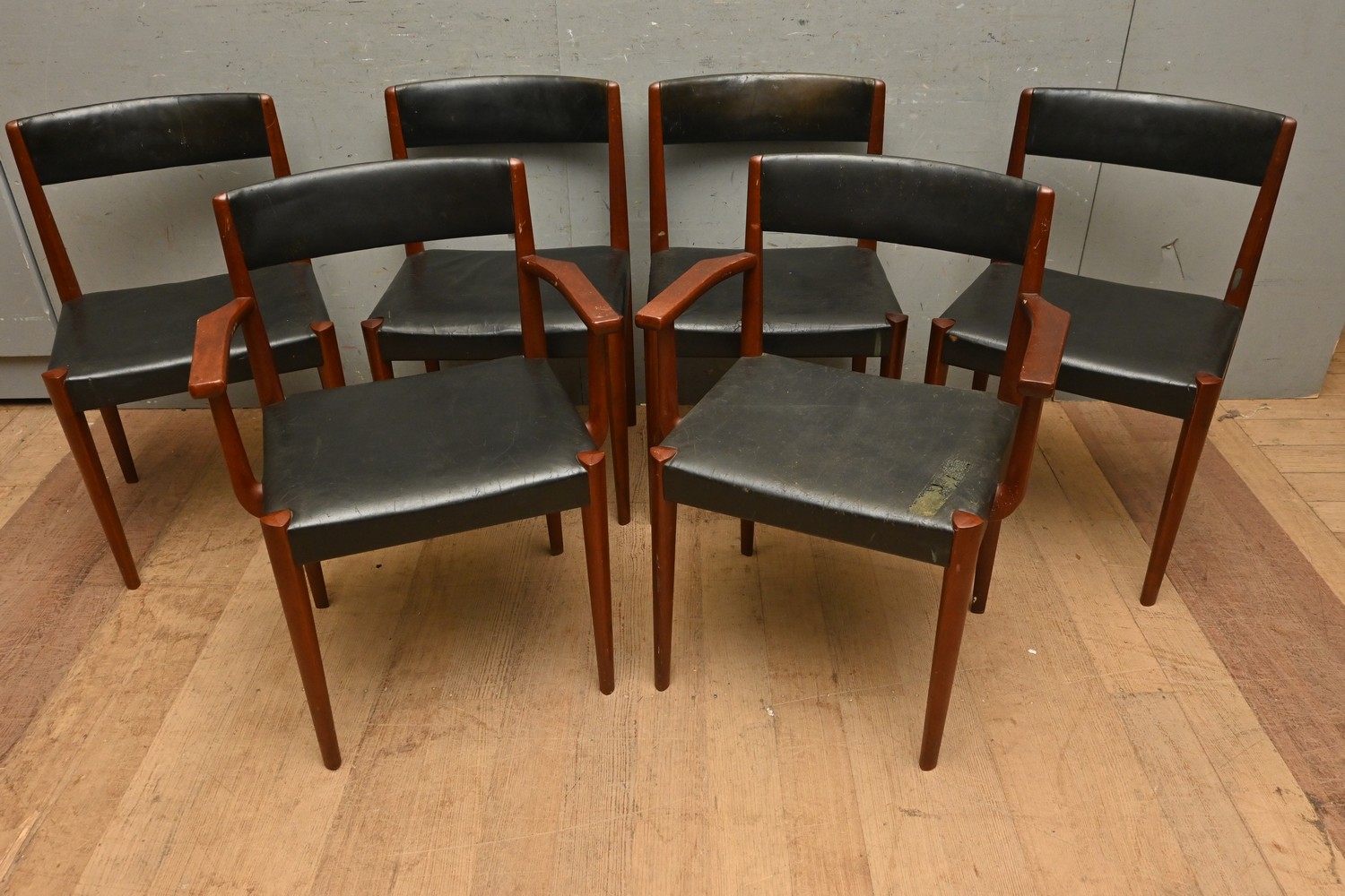 A SET OF SIX TEAK AND LEATHER FRITZ HANSEN DINING CHAIRS (A/F) ( 77H X 56W X 45D CM) (LEONARD JOEL DELIVERY SIZE: X-LARGE)