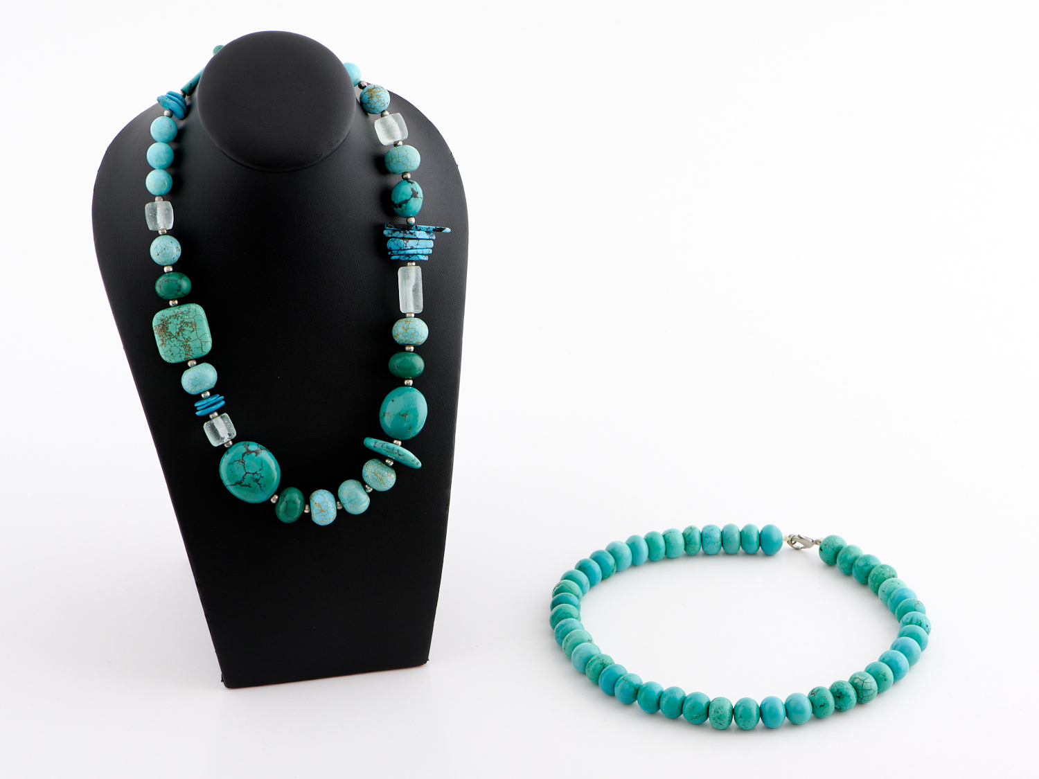TWO TURQUOISE BEADED NECKLACES, LENGTHS 480MM AND 540MM