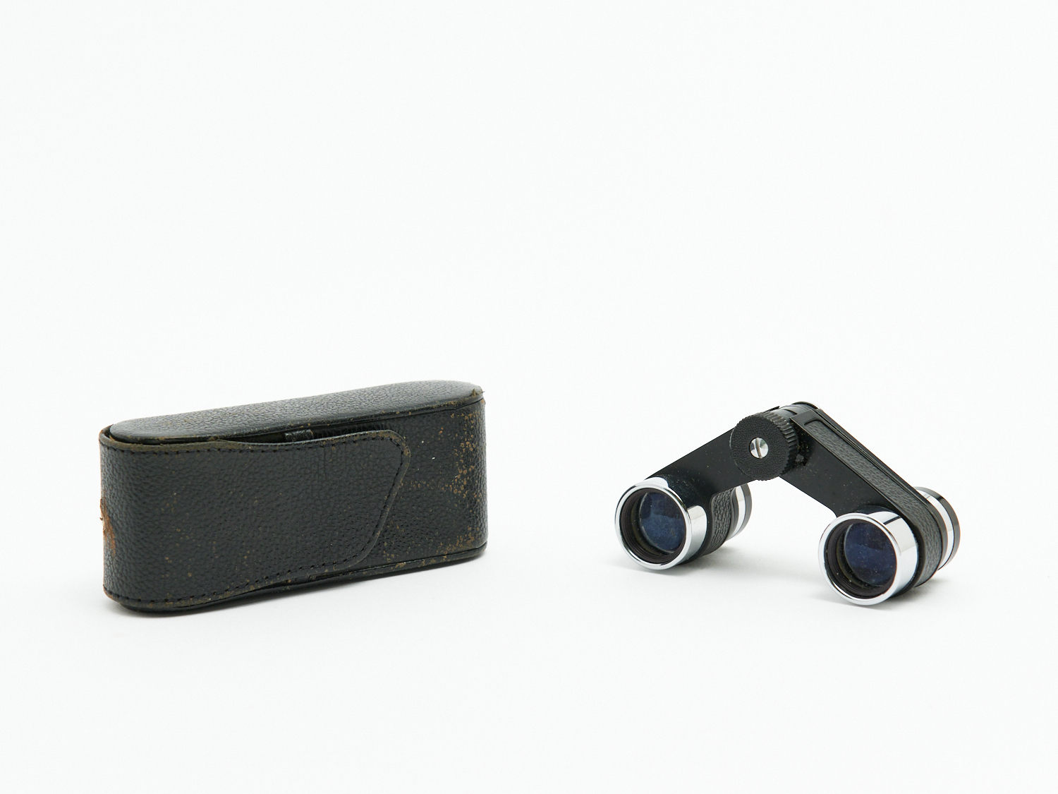 A PAIR OF LEATHER CASED MINIATURE FOLDING OPERA GLASSES, LEONARD JOEL LOCAL DELIVERY: SMALL