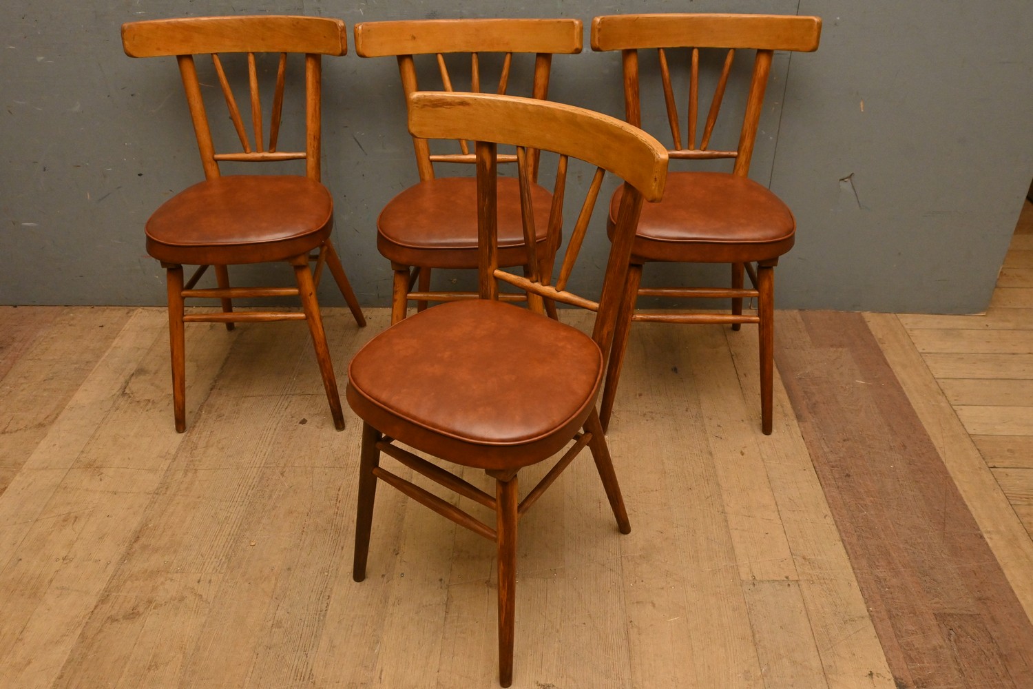 A SET OF FOUR VINTAGE SPINDEL BACKED CHAIRS (A/F) (82H X 47W X 42D CM) (LEONARD JOEL DELIVERY SIZE: LARGE)