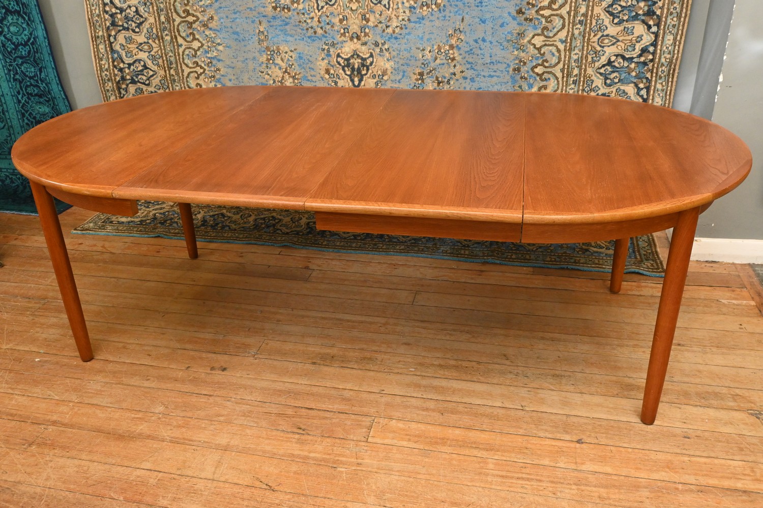 A MID-CENTURY TEAK OVAL EXTENSION DINING TABLE (A/F) (73H X 222W X 123D CM) (PLEASE NOTE THIS HEAVY ITEM MUST BE REMOVED BY CARRIERS AT THE CUSTOMER'S EXPENSE. LEONARD JOEL STAFF CANNOT ASSIST CARRYING THIS ITEM) (X-LARGE ITEM)