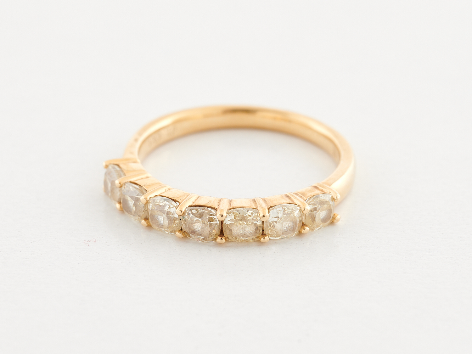 A HALF HOOP YELLOW DIAMOND RING IN 14CT GOLD, THE DIAMONDS TOTALLING APPROXIMATELY 1.43CTS, RING SIZE M/N, WEIGHT 2.8GMS