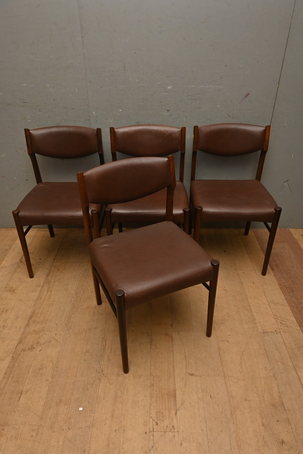 A SET OF FOUR DANISH MID CENUTRY TEAK DINING CHAIRS ( A/F) ( 78H X 46W X 47D CM) (LEONARD JOEL DELIVERY SIZE: LARGE)