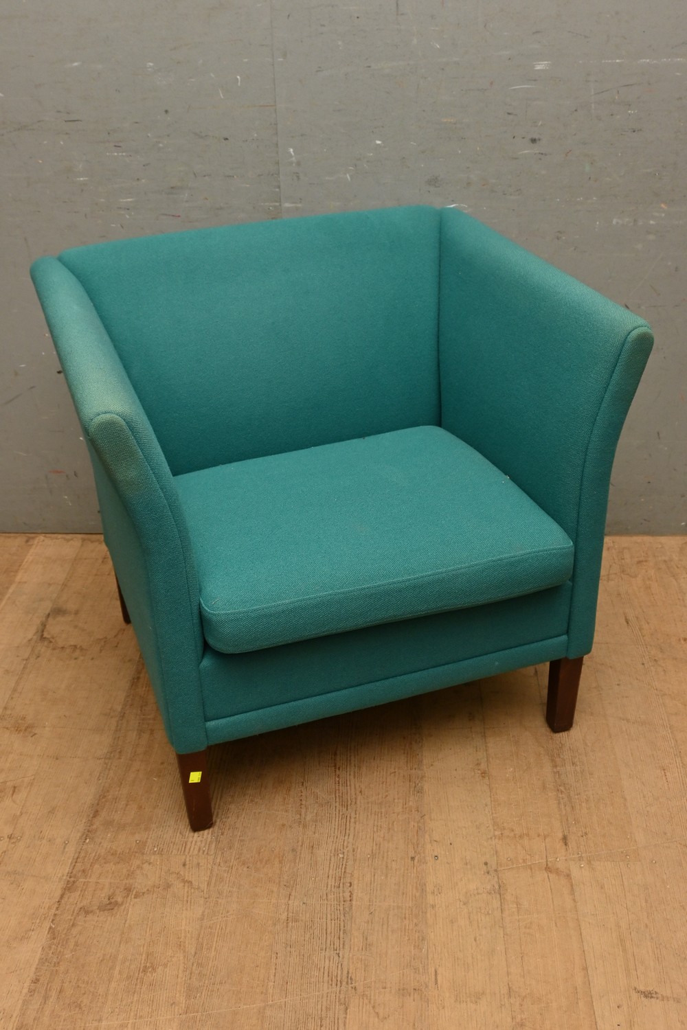 A DANISH MID-CENTURY GREEN UPHOLSTERED ARMCHAIR (A/F) (75H X 80W X 71D CM) (LEONARD JOEL DELIVERY SIZE: X-LARGE)