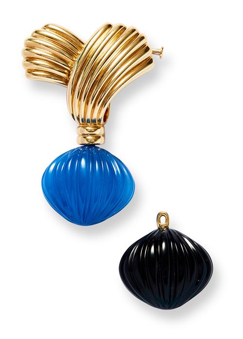 VAN CLEEF & ARPELS SAPPHIRE AND ONYX INTERCHANGABLE BROOCH, CIRCA 1990
