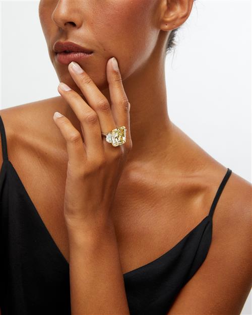 FANCY INTENSE YELLOW DIAMOND AND DIAMOND RING