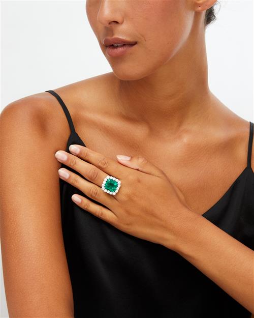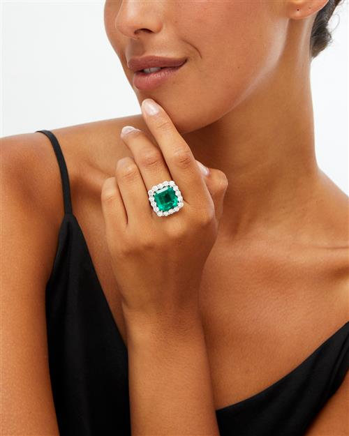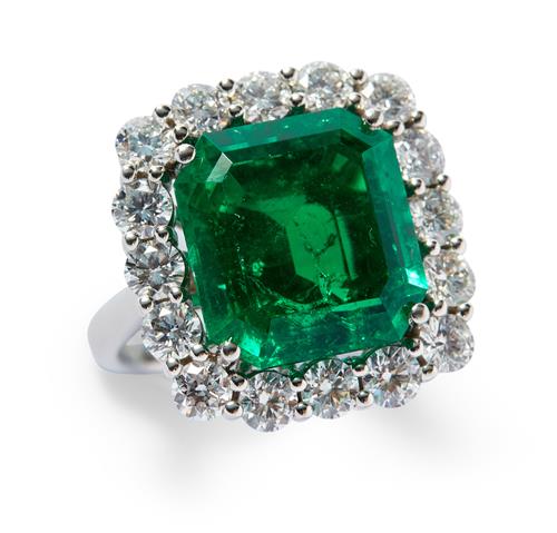 A SPECTACULAR COLOMBIAN EMERALD AND DIAMOND RING
