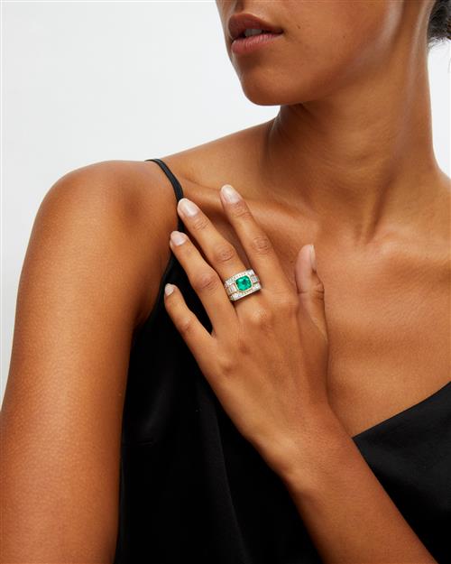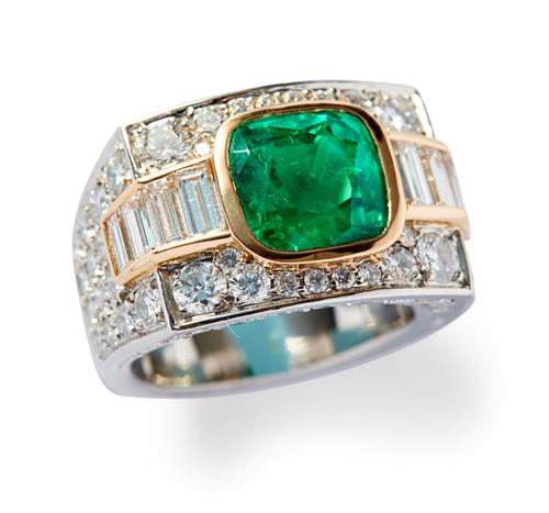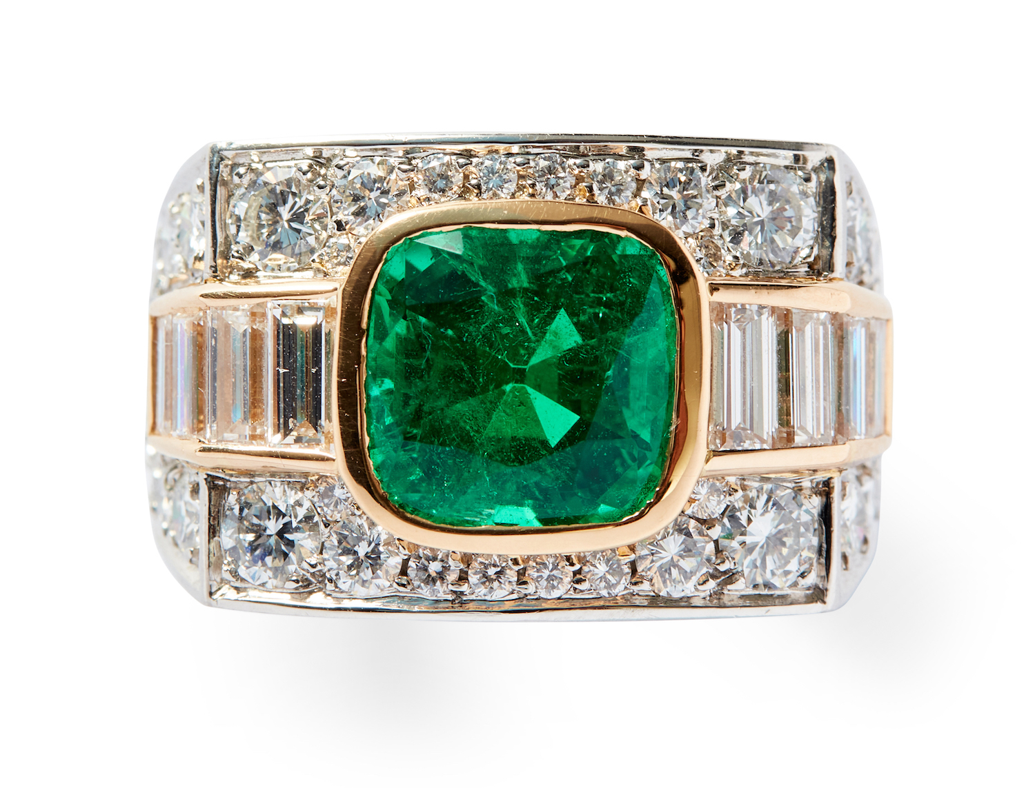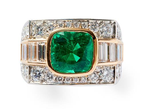 A SPECTACULAR COLOMBIAN EMERALD AND DIAMOND RING