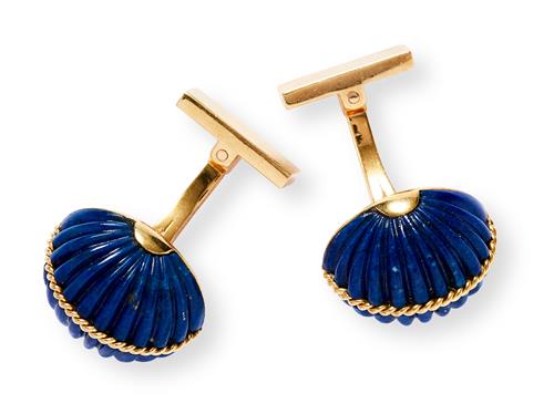 CARTIER 18CT GOLD AND LAPIS LAZULI CUFFLINKS
