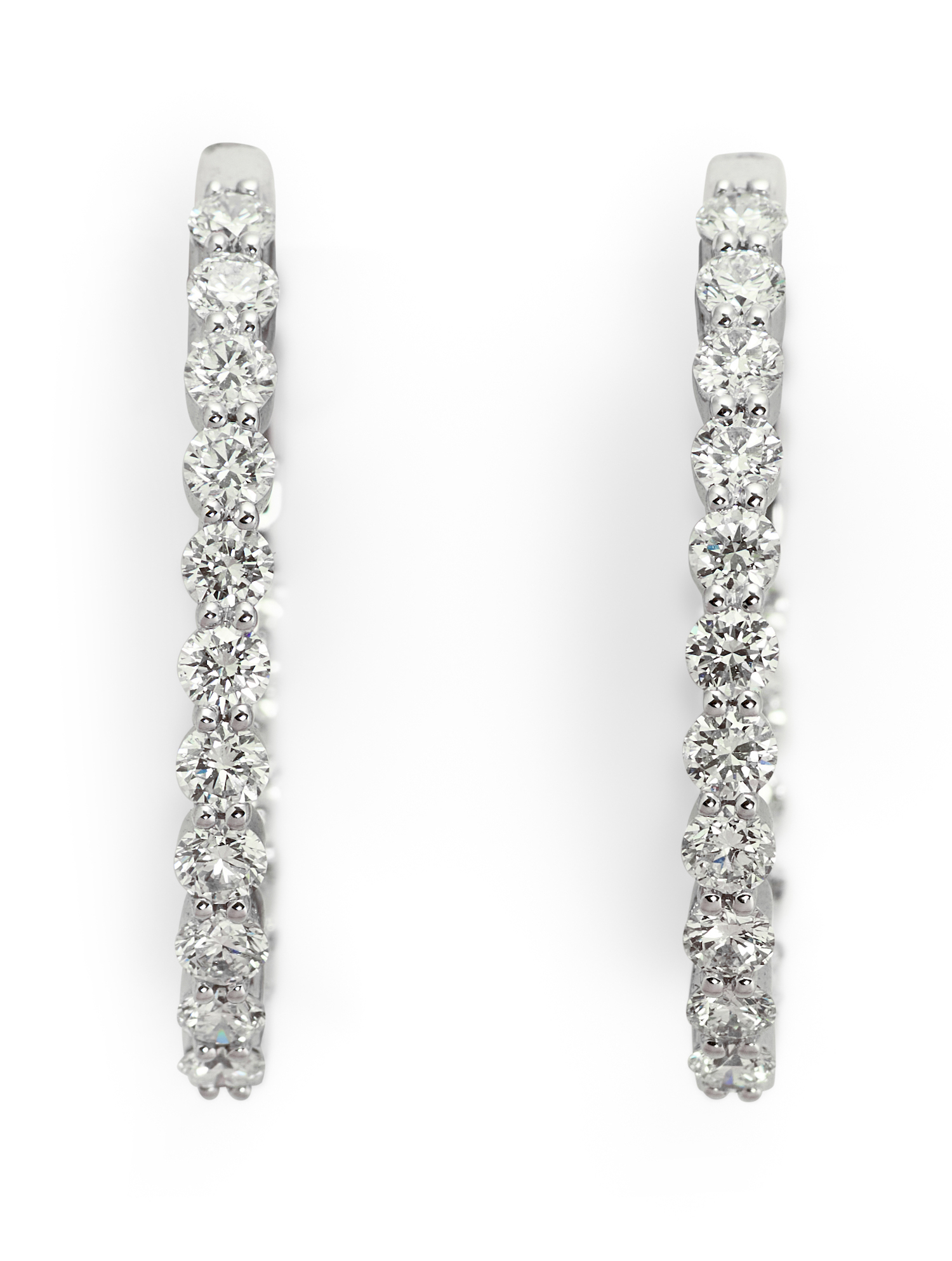 Each elliptical hoop claw-set to the front and inside back with a line of brilliant-cut diamonds together weighing approximately 3.10 carats, mounted in 18ct white gold, inner diameter 24mm, post fittings.