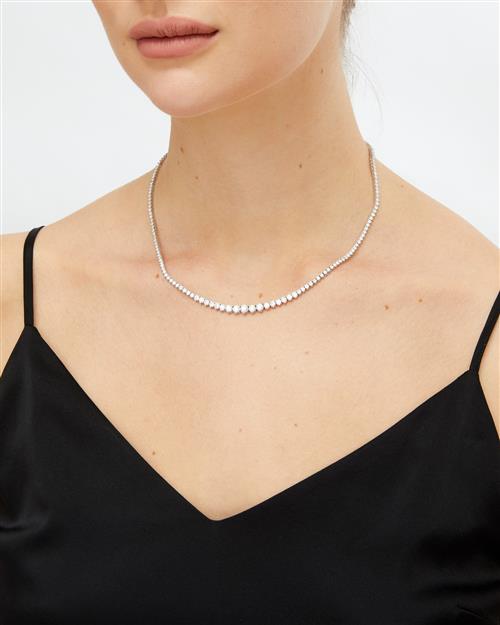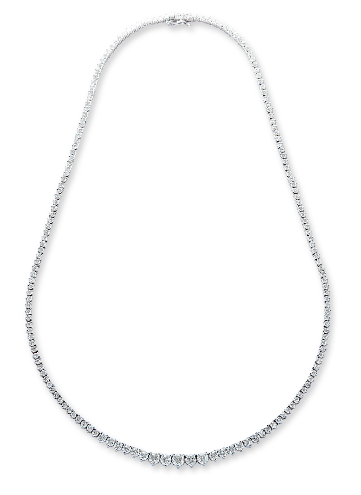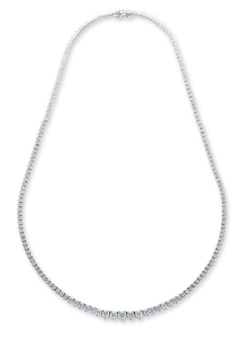 Composed of a line of 179 claw-set brilliant-cut diamonds completed by a concealed box clasp, the diamonds together weighing approximately 8.03 carats, mounted in 14ct white gold, length 440mm.