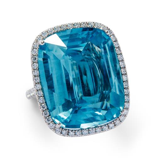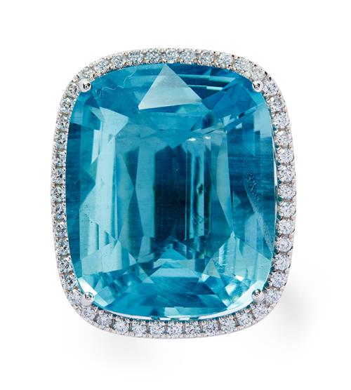 AQUAMARINE AND DIAMOND RING