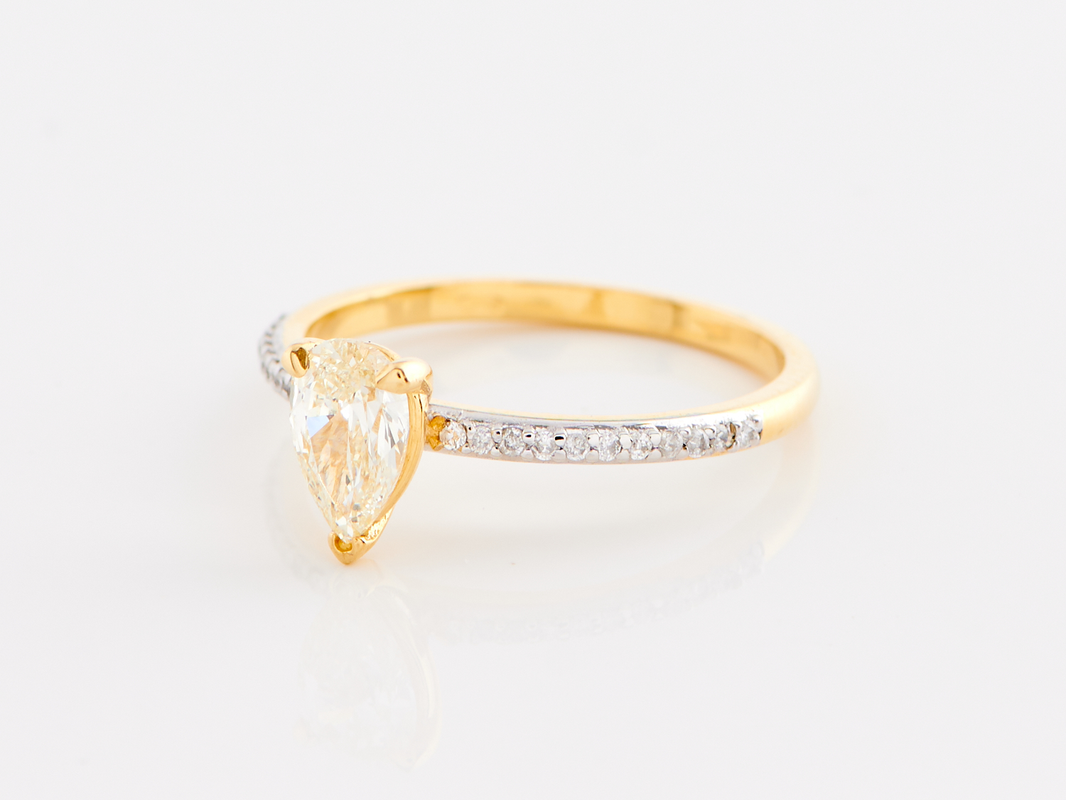 A YELLOW DIAMOND AND DIAMOND RING IN 18CT GOLD, THE YELLOW DIAMOND TOTALLING 0.70CTS, THE DIAMONDS TOTALLING 0.11CTS, RING SIZE O