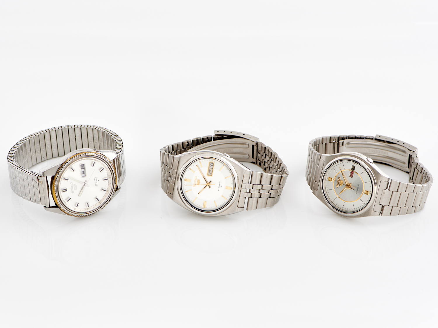 THREE SEIKO WRISTWATCHES IN STAINLESS STEEL, FEATURING DAY-DATE INDICATION, AUTOMATIC MOVEMENT