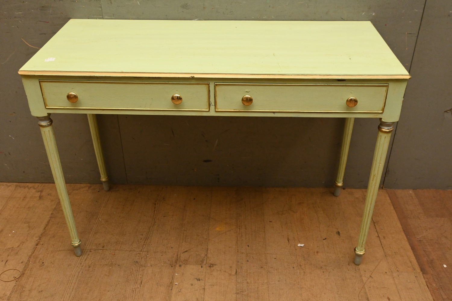 A PAINTED TWO DRAWER HALL TABLE ( 74H X 107W X 46D CM) (LEONARD JOEL DELIVERY SIZE: LARGE)