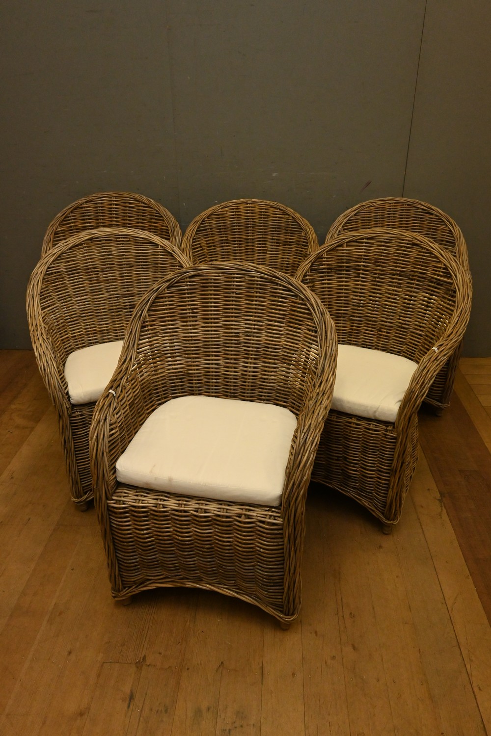SIX RATTAN DINING CHAIRS ( 86H X 67W X 65D CM) (LEONARD JOEL DELIVERY SIZE: X-LARGE)