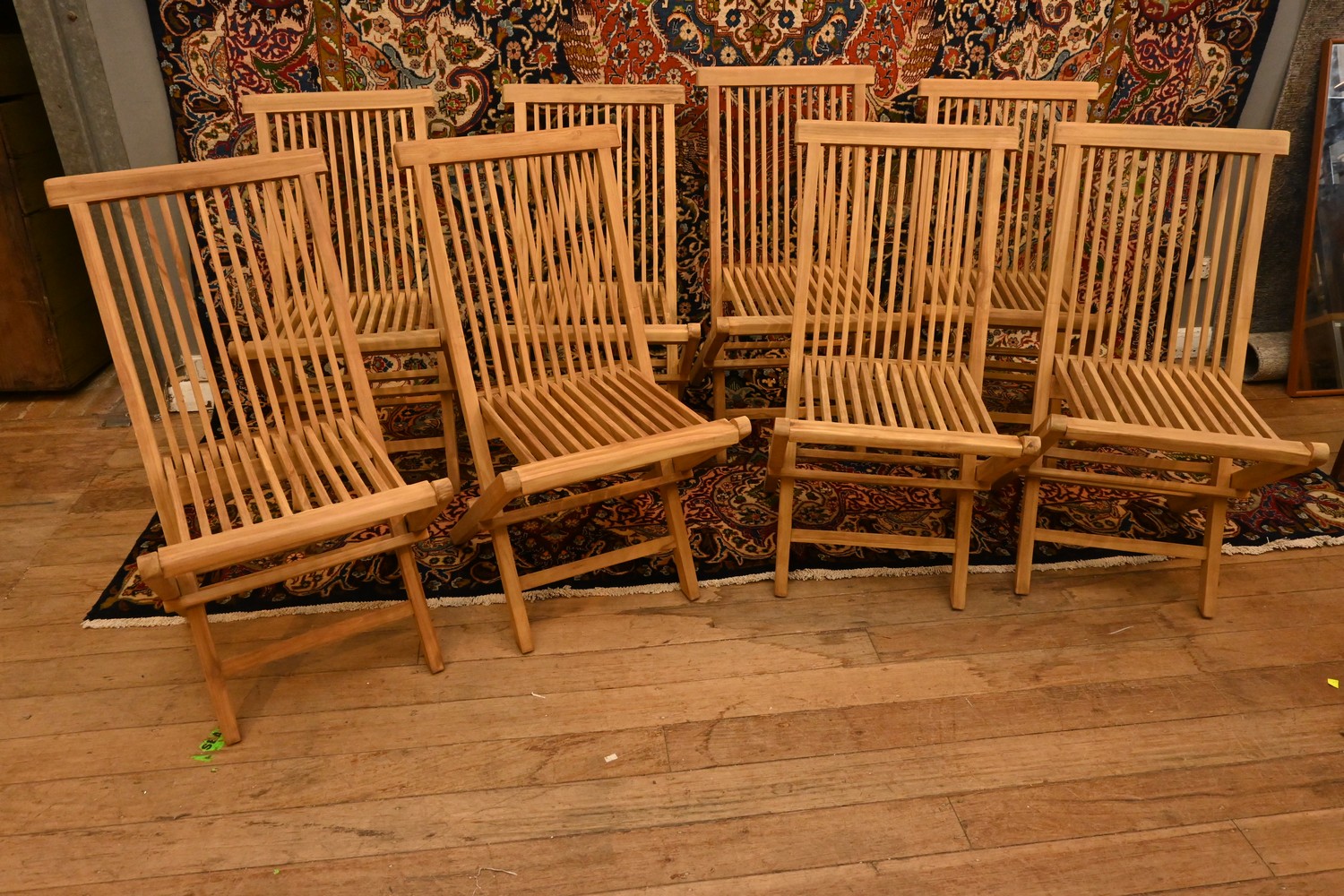 EIGHT INDONESIAN TEAK OUTDOOR DINING CHAIRS ( 92H X 47W X 62D CM) (LEONARD JOEL DELIVERY SIZE: X-LARGE)