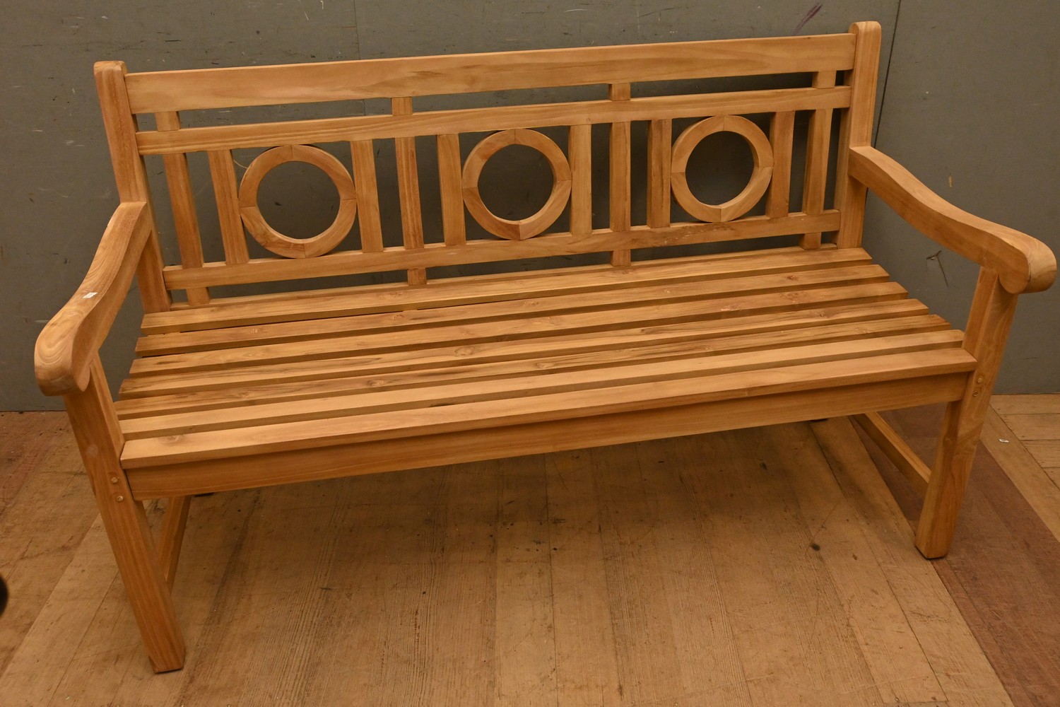 A TEAK OUTDOOR BENCH SEAT ( 92H X 151W X 67D CM) (LEONARD JOEL DELIVERY SIZE: X-LARGE)