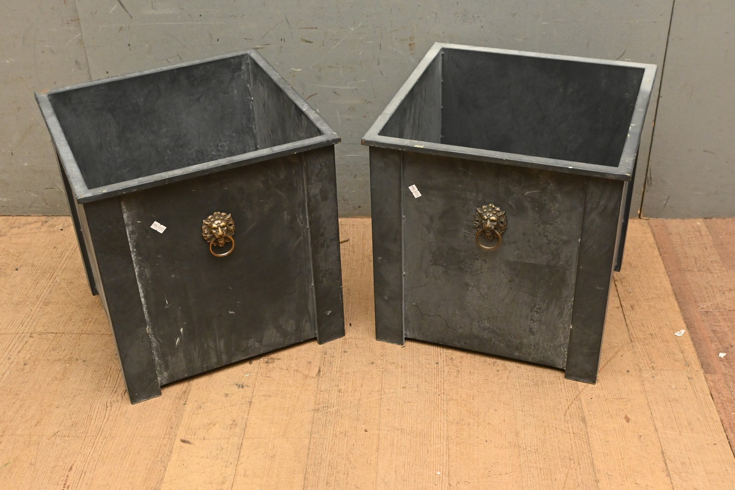A PAIR OF METAL AND BRASS PLANTER BOXES ( 40H X 40W X 40D CM) (LEONARD JOEL DELIVERY SIZE: LARGE)