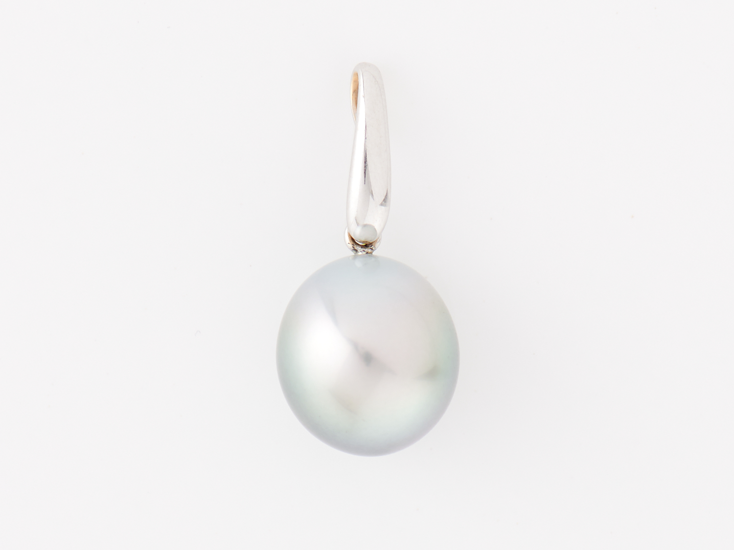 A TAHITIAN PEARL PENDANT IN 18CT WHITE GOLD, THE PEARL MEASURING 12MM X 11MM, LENGTH INCLUDING BALE 25MM