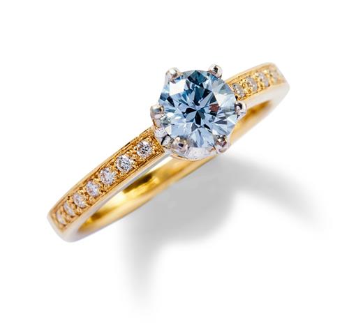 FANCY BLUE DIAMOND AND DIAMOND RING