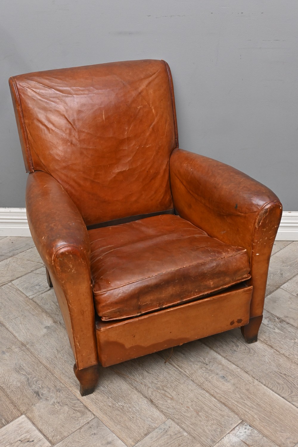AN ART DECO LEATHER TUB CHAIR (A/F) (80H X 72W X 74D CM) (LEONARD JOEL DELIVERY SIZE: X-LARGE)