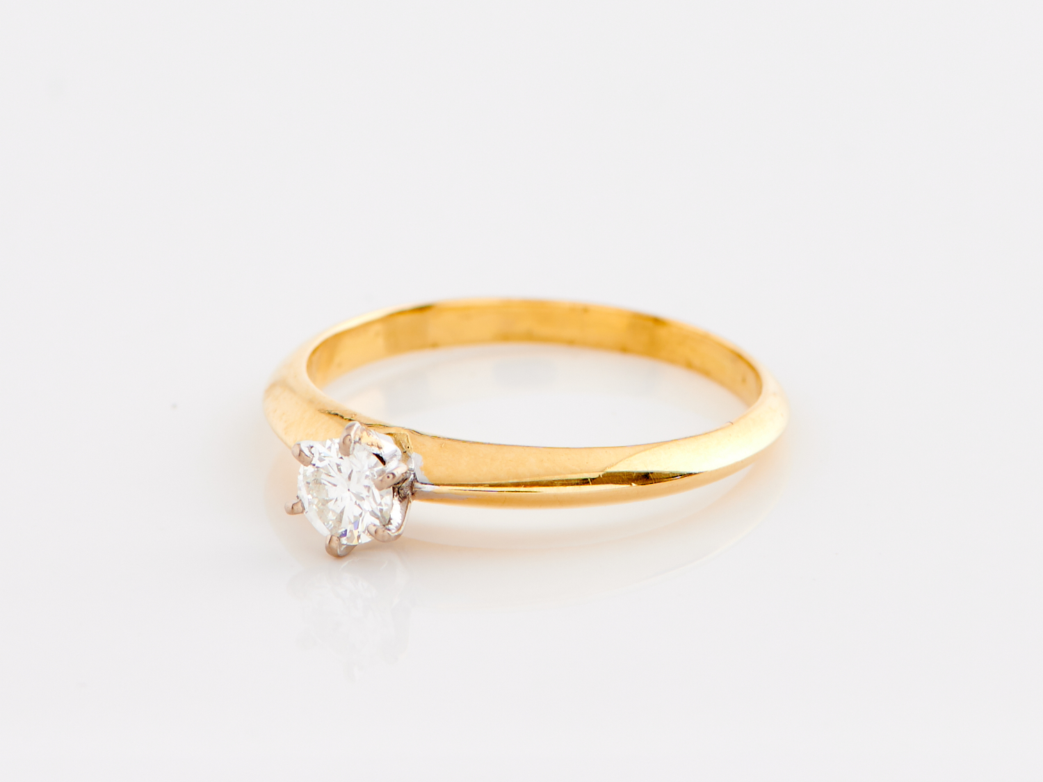 A SOLITAIRE DIAMOND RING IN 18CT GOLD, THE DIAMOND WEIGHING APPROXIMATELY 0.24CTS, RING SIZE M
