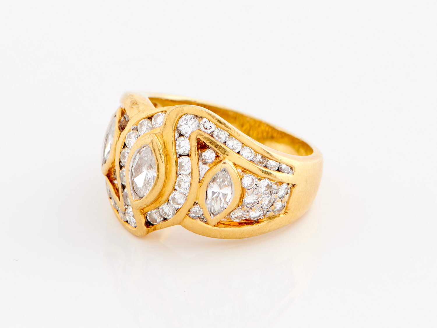 A DIAMOND DRESS RING IN 18CT GOLD, RING SIZE K, WEIGHT 9.7GMS