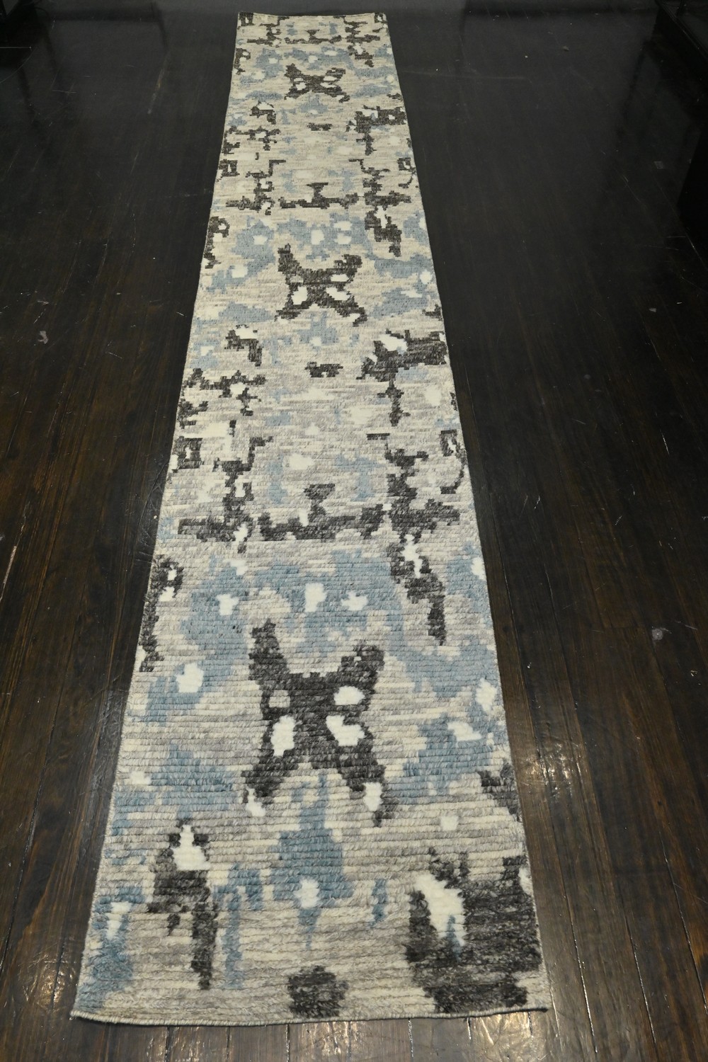 A BRAND-NEW MODERN MOROCCAN BERBER RUNNER. 100% WOOL PLUSH PILE, HAND WOVEN IN MULTI COLOUR TONES. SIZE: 496 X 86 CM ORIGIN: INDIA