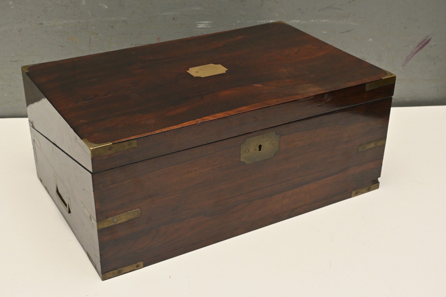 AN ANTIQUE ROSEWOOD WRITER'S SLOPE - NO KEY (A/F) (20H X 49W X 31D CM) (LEONARD JOEL DELIVERY SIZE: LARGE)