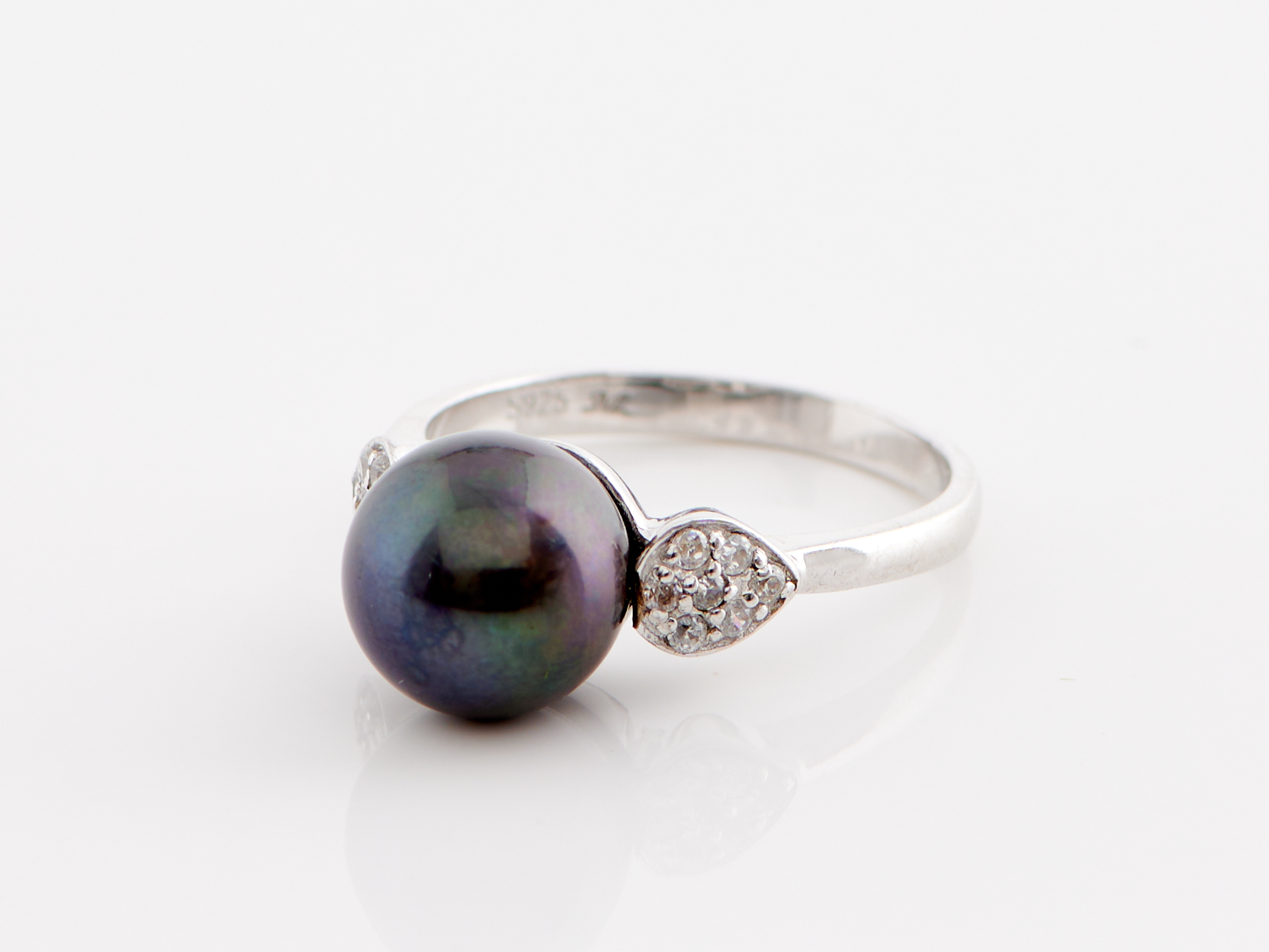 A FRESHWATER PEARL AND CUBIC ZIRCONIA RING IN STERLING SILVER, PEARL DIAMETER 9.2MM, RING SIZE M-N, WEIGHT 3.3GMS
