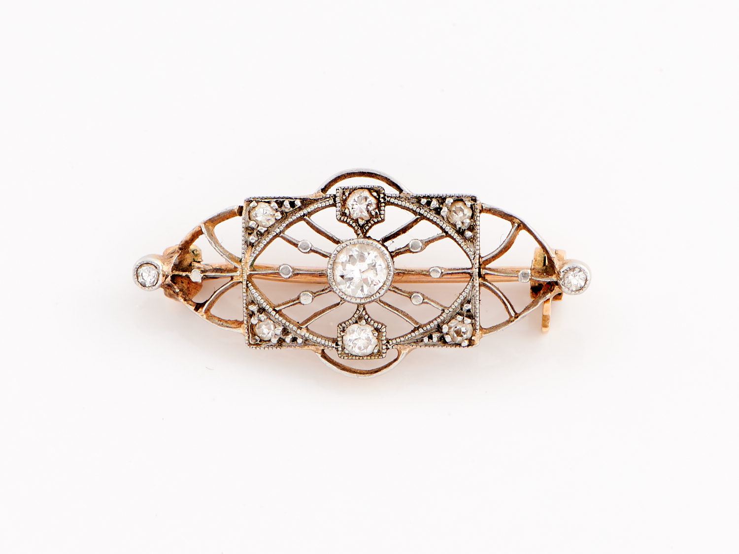 A DIAMOND SET BROOCH IN 9CT GOLD, WEIGHT 2.6GMS