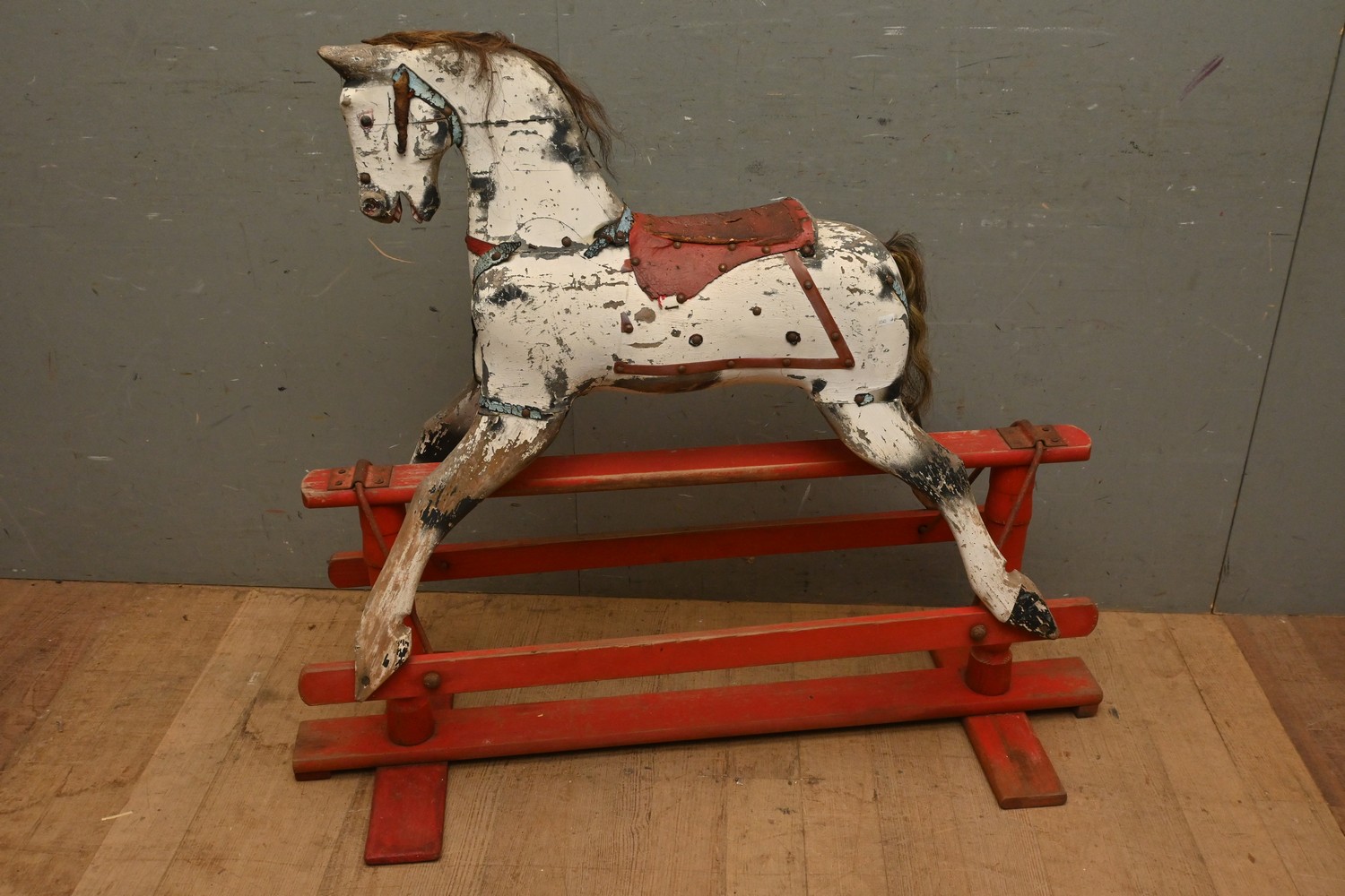 A RETRO TIMBER ROCKING HORSE (A/F) (110H X 47W X 122D CM) (LEONARD JOEL DELIVERY SIZE: LARGE)
