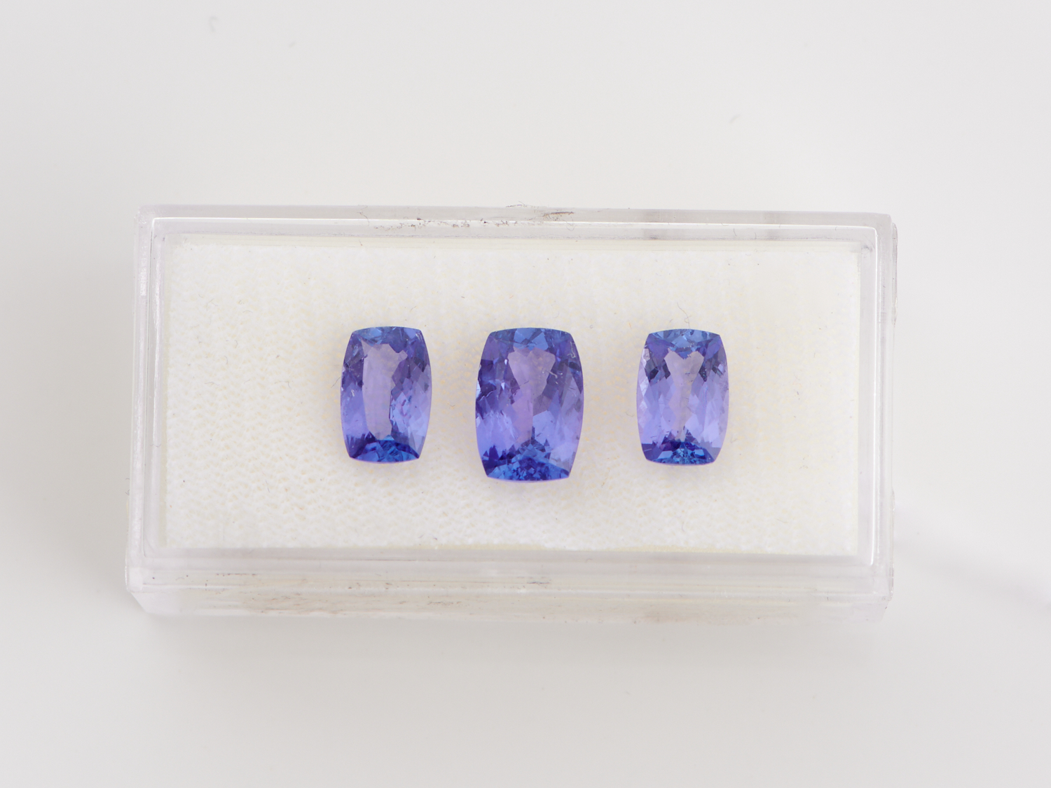 THREE CUSHION CUT TANZANITES TOTALLING 6.10CTS