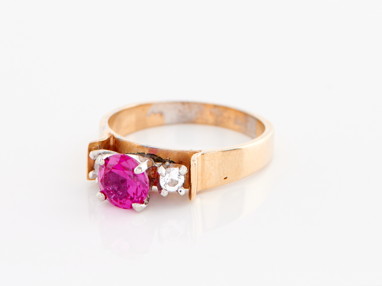 A CEYLON ROYAL BLUESAPPHIRE AND DIAMOND SET RING IN 18CT TWO TONE GOLD, THE SAPPHIRE WEIGHING 7.08CTS, THE DIAMONDS TOTALLING 0.28...