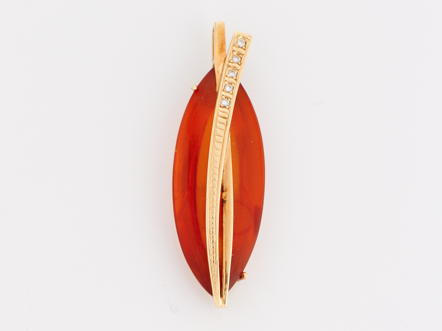 A DIAMOND SET AMBER PENDANT IN 14CT GOLD, 55 X 19MM, WEIGHT 9.5GMS