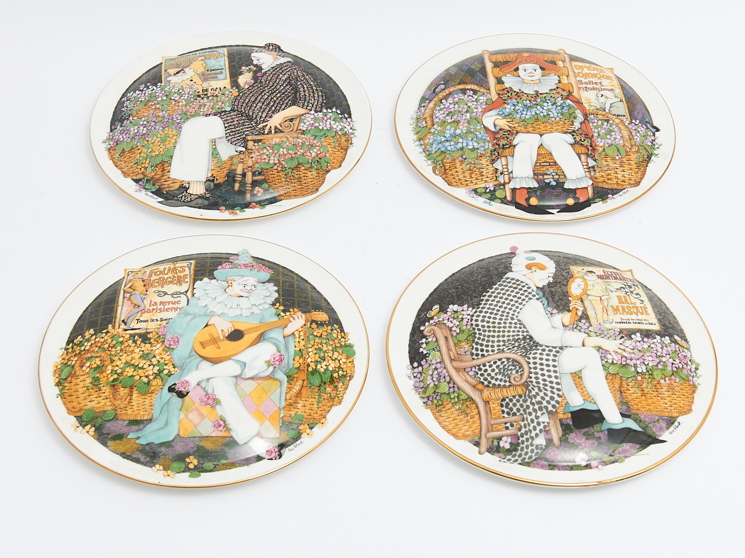 FOUR ROYAL DOULTON LIMITED EDITION WALL PLATES ''BEHIND THE PAINTED MASQUE", DIA.23CM, LEONARD JOEL LOCAL DELIVERY: MEDIUM