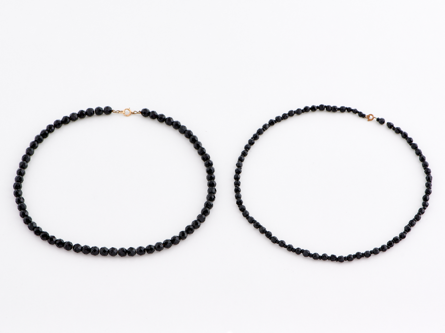 TWO FACETED FRENCH JET NECKLACES, LENGTHS 510MM AND 520MM