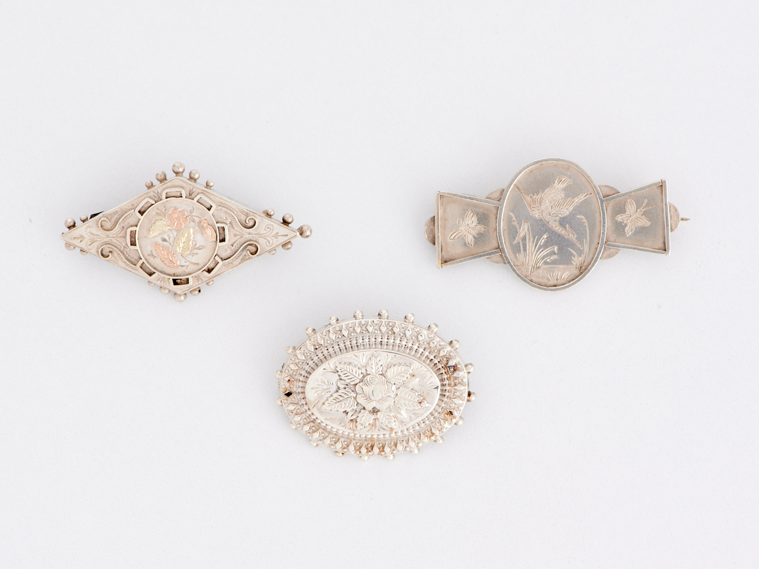 THREE VICTORIAN BROOCHES IN CONTINENTAL SILVER, INCLUDING ONE WITH GOLD DETAIL