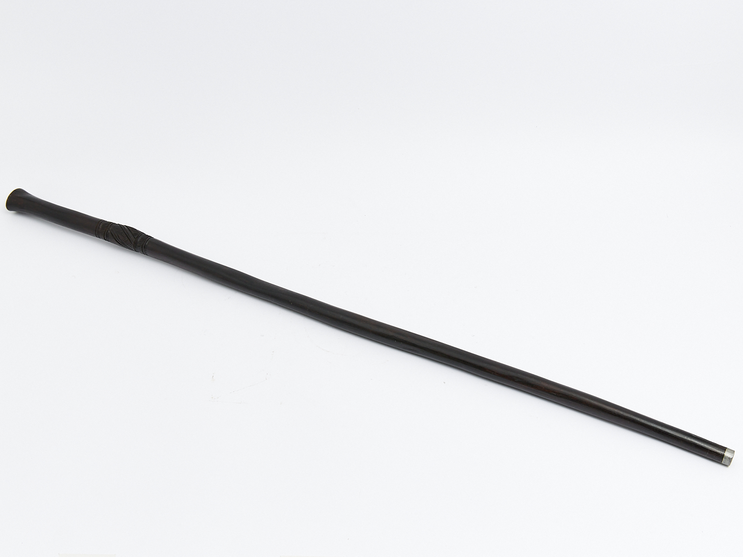 AN AFRICAN BLACK WOOD WALKING STICK, L.97CM, LEONARD JOEL LOCAL DELIVERY: SMALL