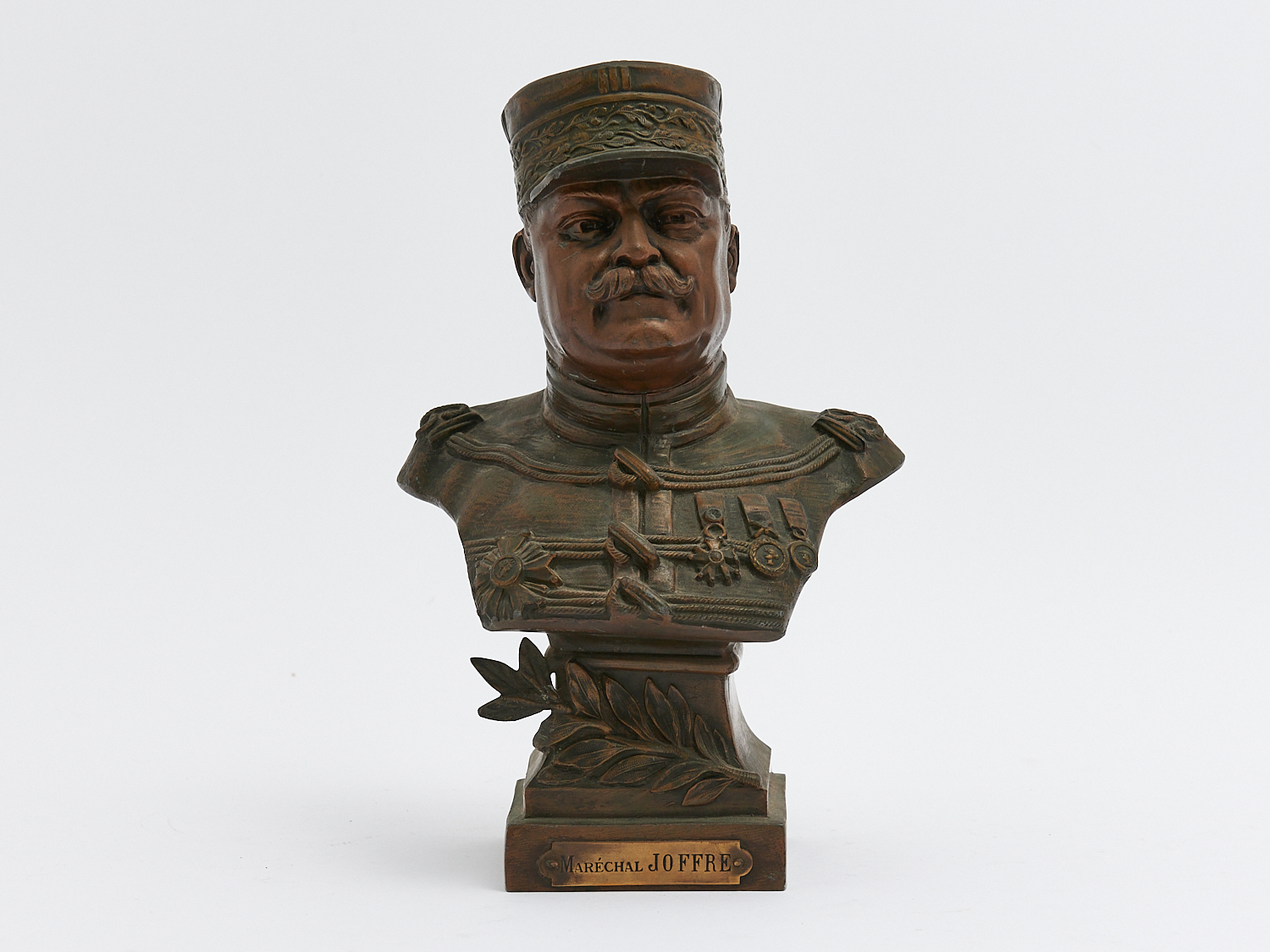 A BRONZE BUST OF MARECHAL JOFFRE, H.26.5CM, LEONARD JOEL LOCAL DELIVERY: SMALL