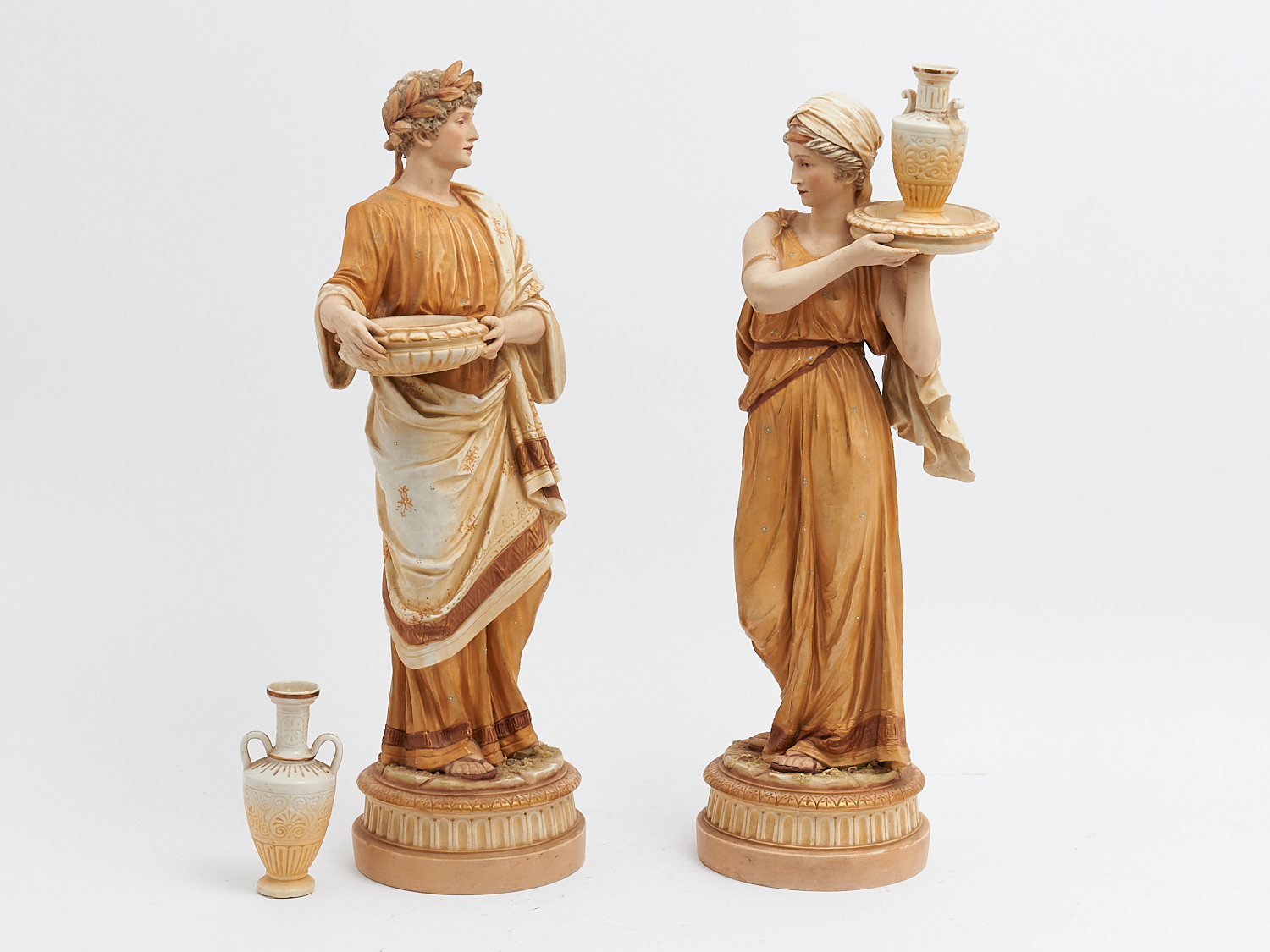 A PAIR OF ROYAL DUX STYLE WATER CARRIER FIGURES, NUMBERED TO BASE (A/F), H.46CM, LEONARD JOEL LOCAL DELIVERY: MEDIUM