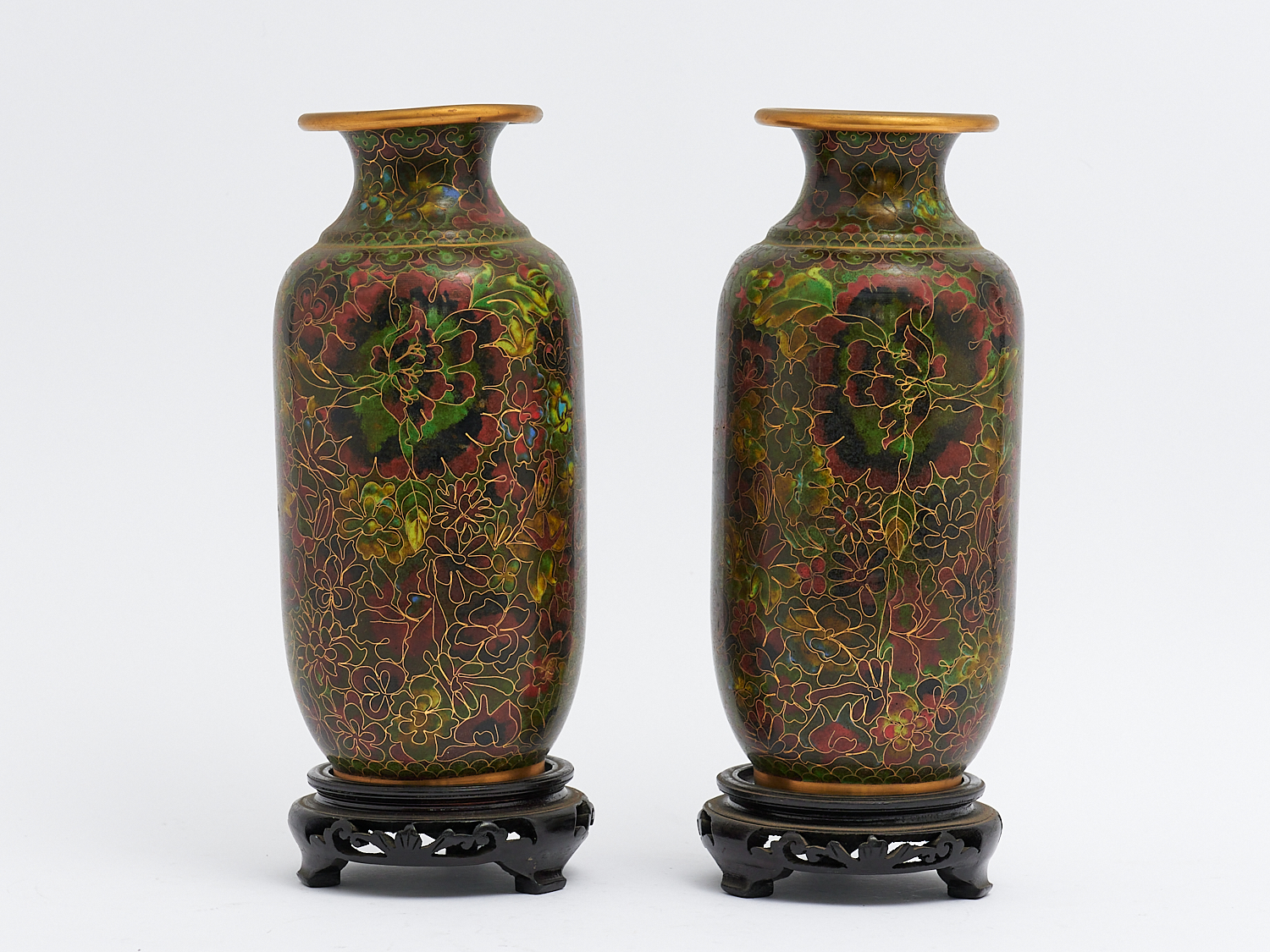A PAIR OF CLOISONNE VASES, H.23CM, LEONARD JOEL LOCAL DELIVERY: SMALL