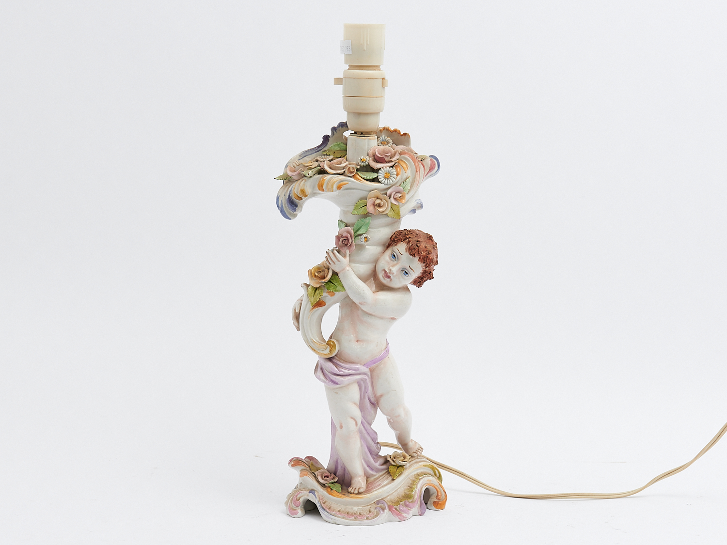 A PORCELAIN LAMP BASE WITH CHERUB DECORATION (A/F), H.42.5CM, LEONARD JOEL LOCAL DELIVERY: MEDIUM