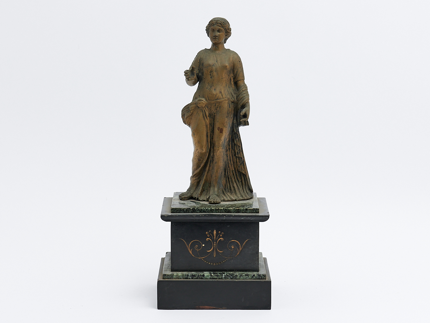 A SPELTER FIGURE OF A LADY ON MARBLE BASE, H.37CM, LEONARD JOEL LOCAL DELIVERY: MEDIUM